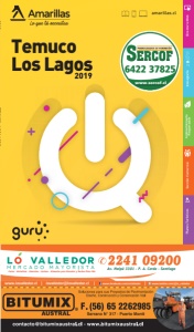 Planos Turísticos Iconografía Ambientalmente Responsable Sección Comercial amarillas.cl 2019 TEMUCO - LOS LAGOS Directorio Web 2019 contacto@bitumixaustral.cl www.bitumixaustral.cl Soluciones para sus Proyectos de Pavimentación Diseño, Construcción y Conservación Vial Serrano N° 317 - Puerto Montt F. (56) 6522 62985 BITUMIX® AUSTRAL abastible Mónica Díaz Lord Cochrane 748 Bellavista Puerto Montt Volcán Puntiagudo 861 distribuidoradegas@surnet.cl Fonos 6522 58046 6522 59623 2241 09200 Av. Maipú 3301 - P. A. Cerda - Santiago www.lovalledor.cl | lovalledor@lovalledor.cl | www.facebook.com/LoValledor | www.twitter.com/ @lo_valledor Frutas - Hortalizas - Abarrotes - Lácteos - Alimentos para Mascotas y Muchas Otras Más Temuco Los Lagos 6422 37825 www.sercof.cl